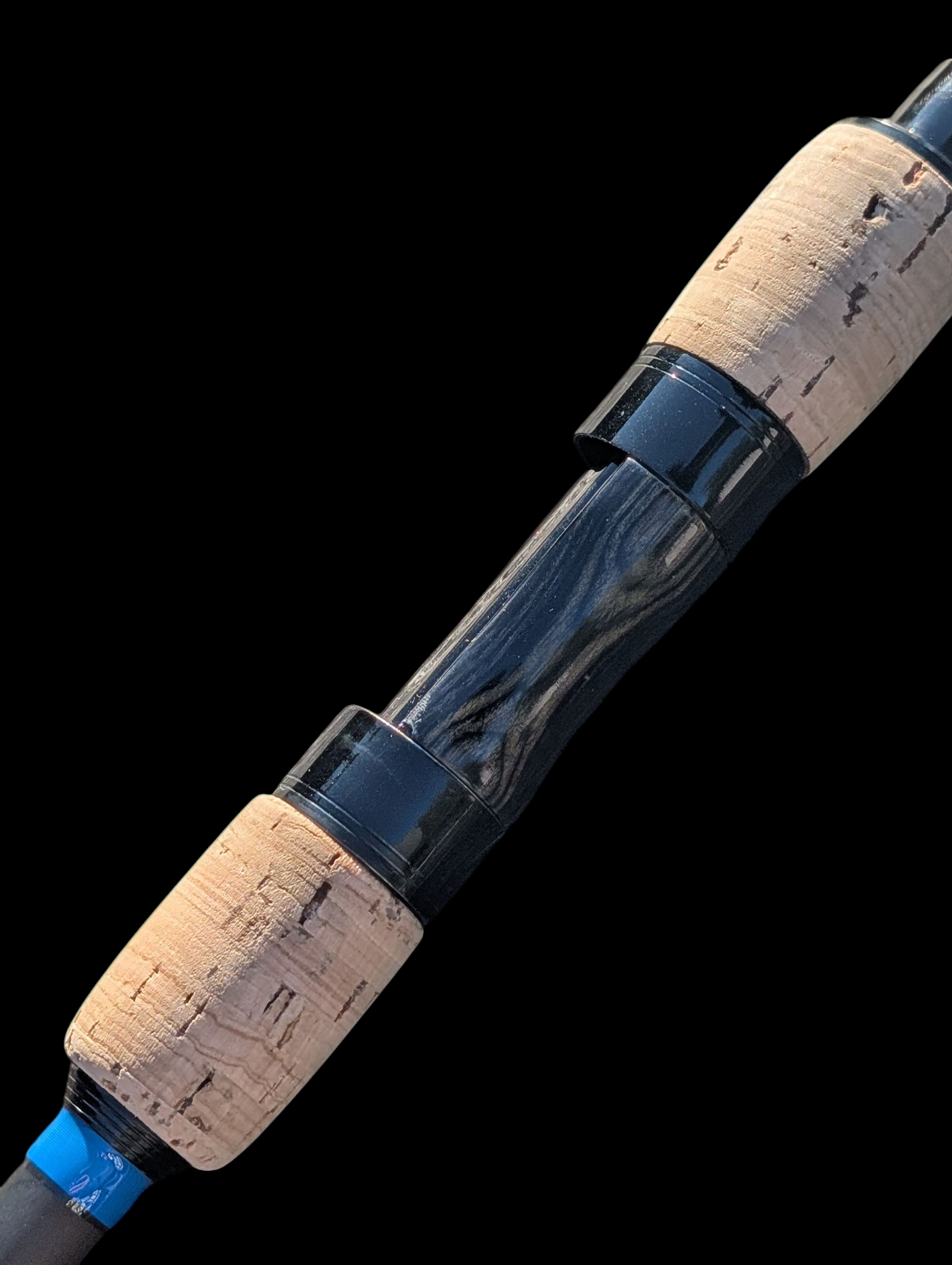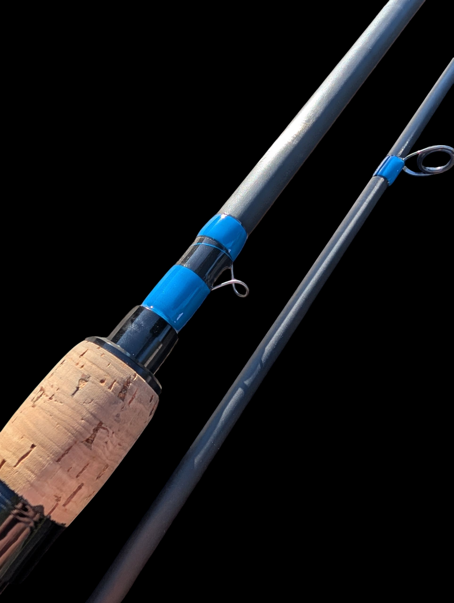 Der Kork-Splitgriff liegt super in der Hand, der Holz/Alu Rollenhalter in Schwarz ist ein echter Hingucker und die Fuji Titan SlimSic Ringe sorgen für weite Würfe.