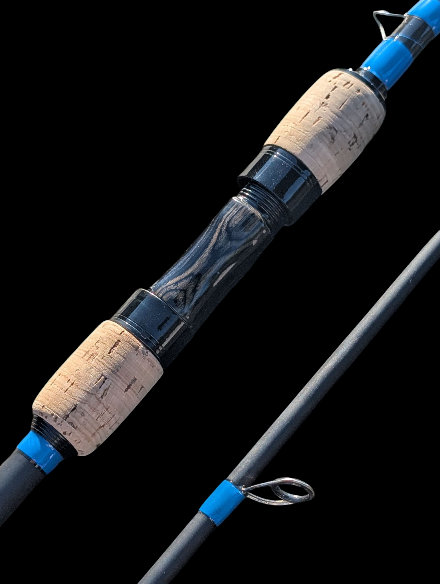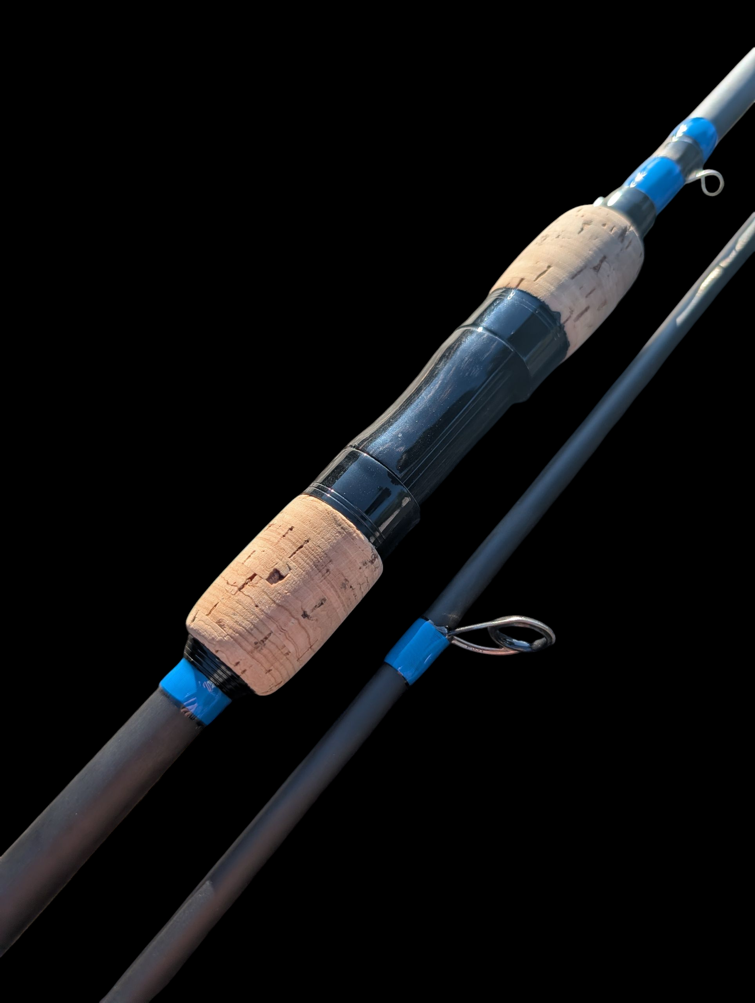 Der Kork-Splitgriff liegt super in der Hand, der Holz/Alu Rollenhalter in Schwarz ist ein echter Hingucker und die Fuji Titan SlimSic Ringe sorgen für weite Würfe.