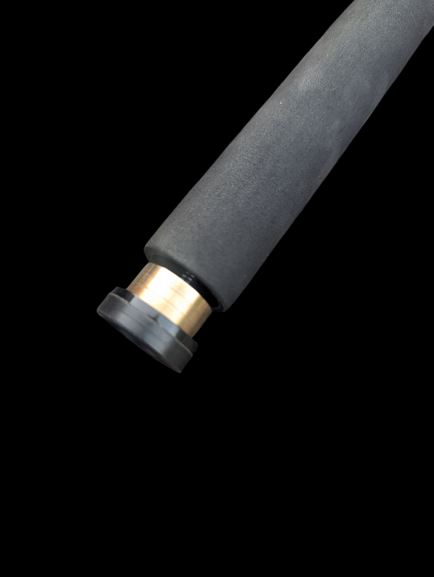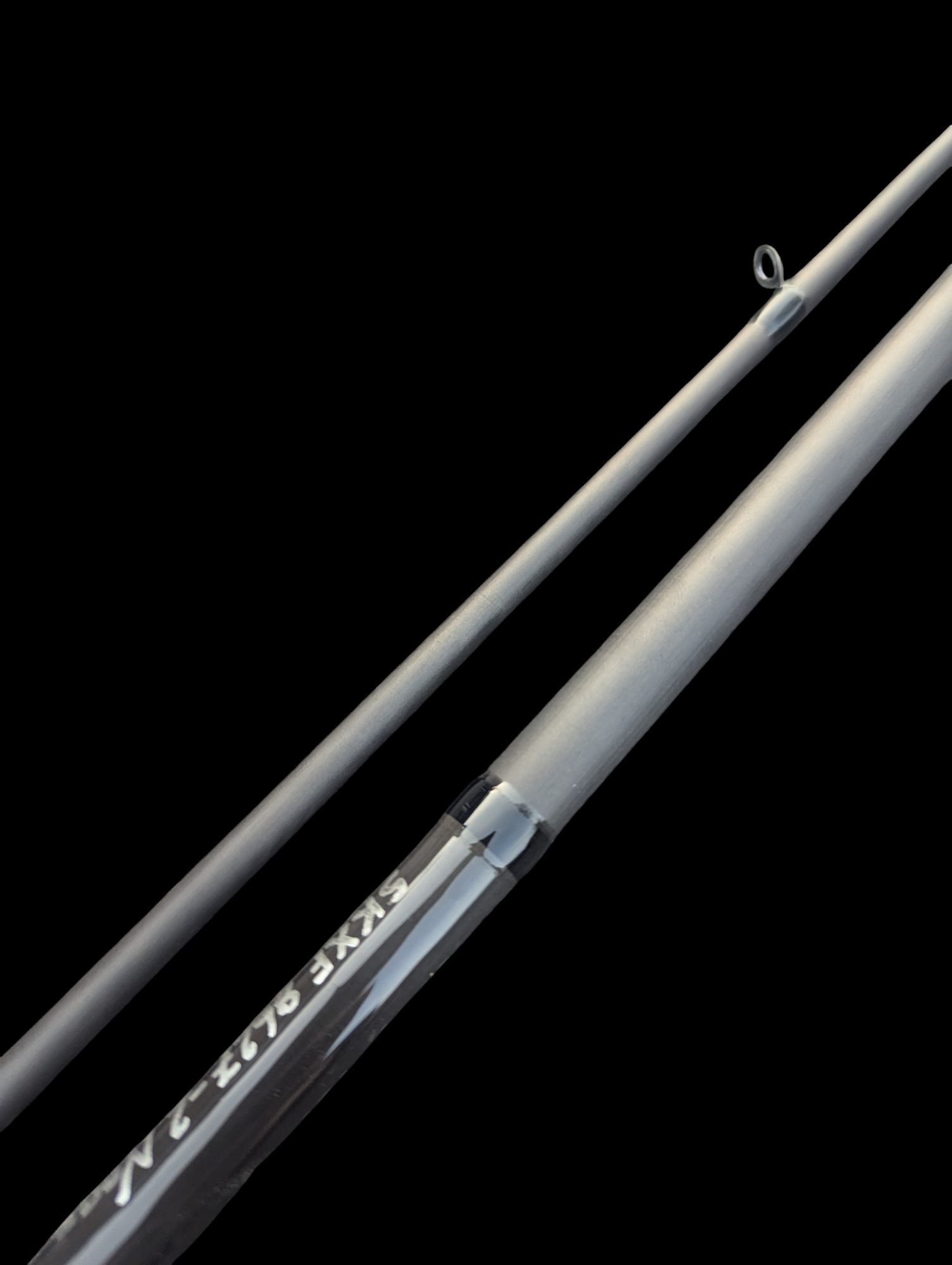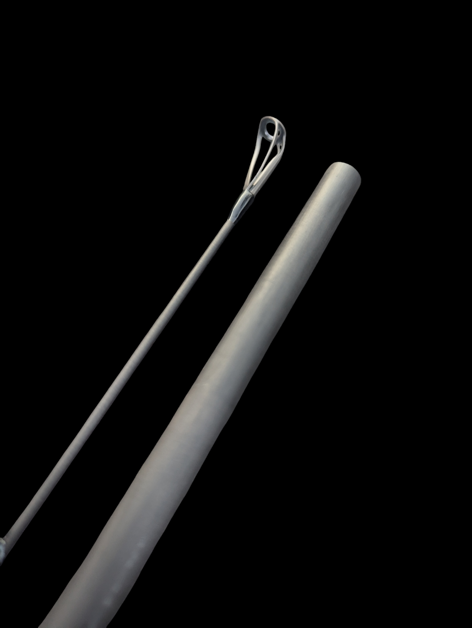 Dieser Kundenauftrag umfasste den Aufbau einer spezialisierten Rute, die sich besonders gut für die Fischerei an der Elbe eignet. Das Design ist bewusst auf eine edle Schwarz-Optik ausgerichtet, wobei selbst die Gunsmoke-farbenen Fuji K-Serie Sic Ringe diesen monochromen Ansatz unterstreichen.